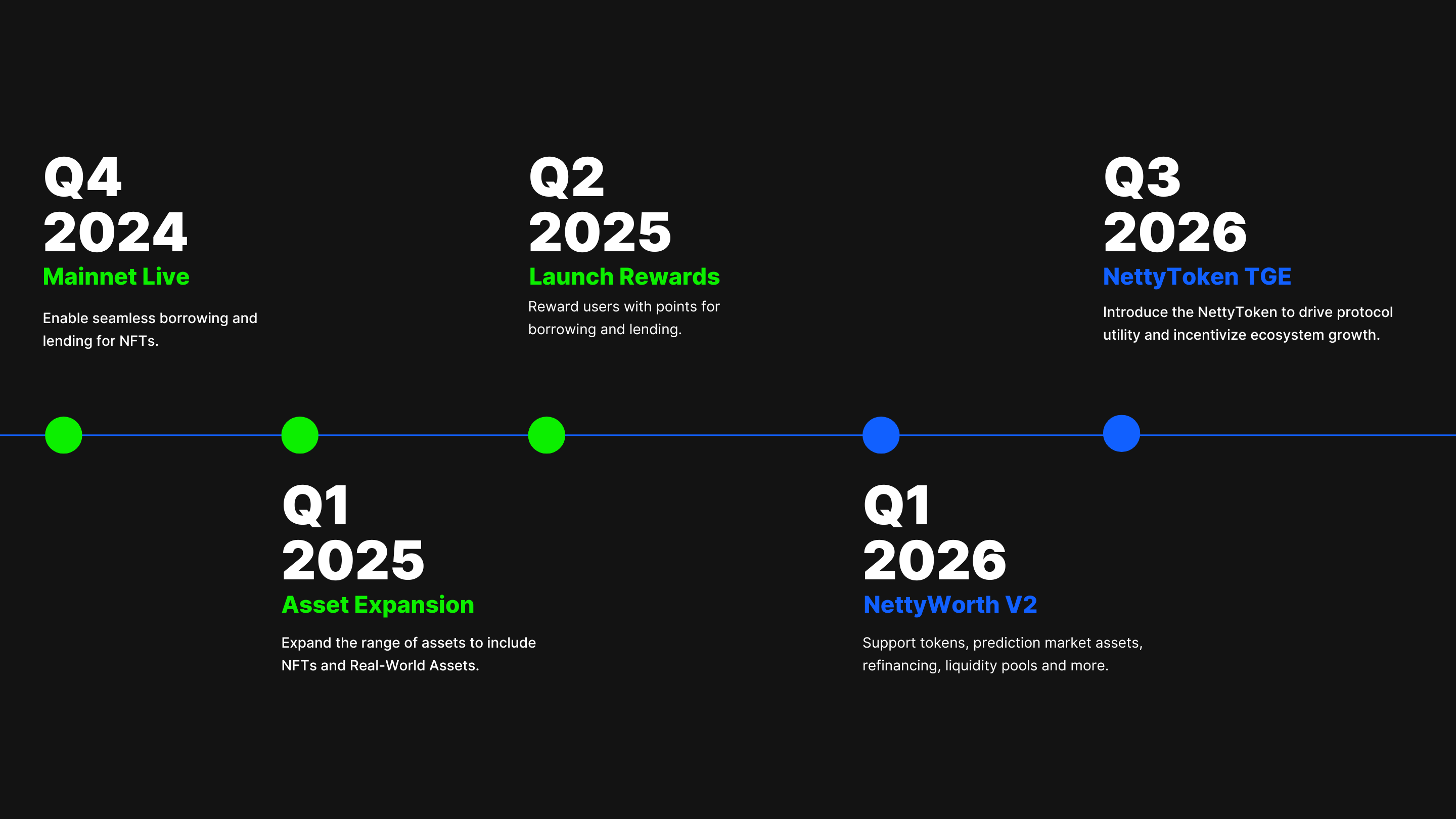 NettyWorth's long-term vision is to create a comprehensive ecosystem that not only meets the evolving needs of our users but also drives innovation within the DeFi industry. Through continuous development, strategic partnerships, and a commitment to excellence, NettyWorth is set to redefine the future of DeFi loans.